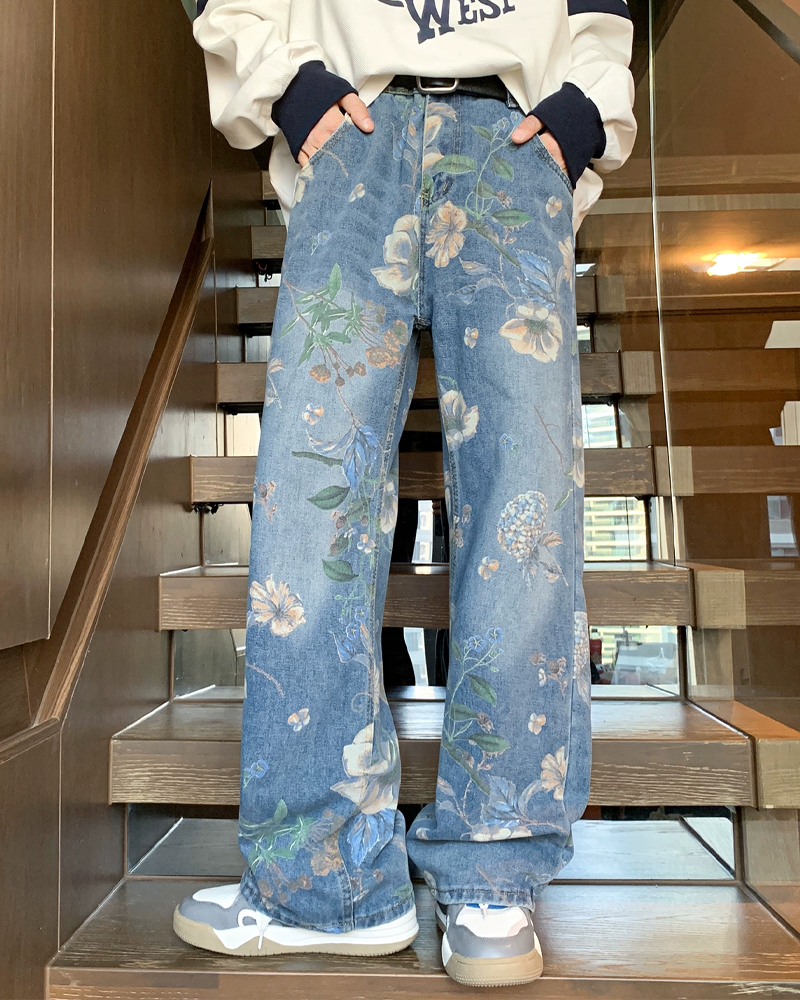 Our Jeans Floral Print, made from quality material, feature floral motifs, a mid-waist loose cut, 4 pockets and are available in 6 sizes. Get yours today!