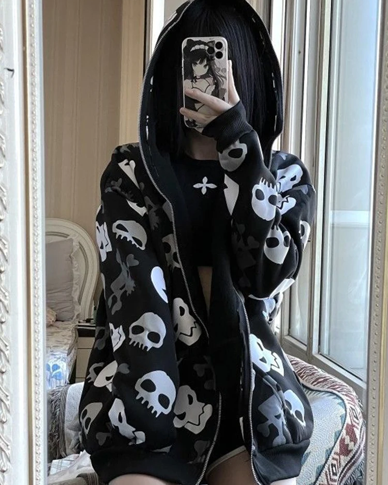Add a touch of Y2K to your outfits with our Skull Zip Up Hoodie.