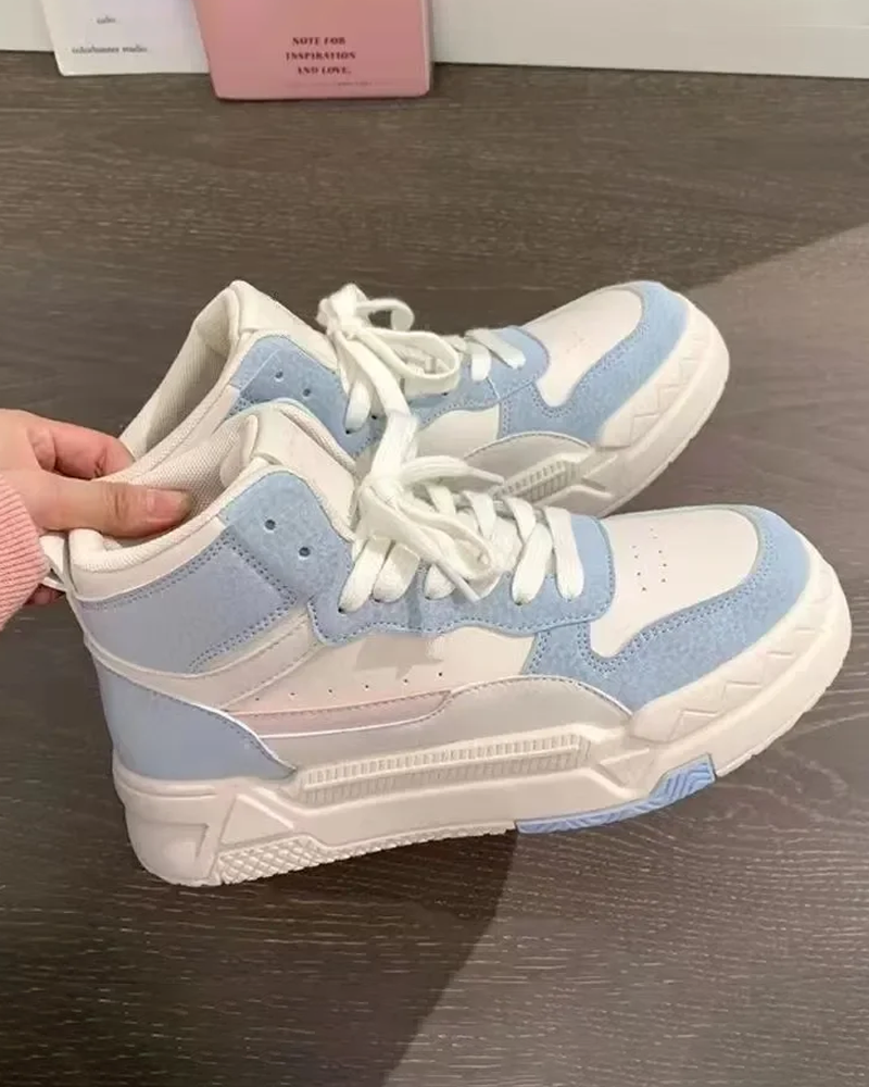 Our Vintage High Top Sneakers Womens, made from quality materials, feature a thick sole, a Y2K pastel design and are available in 2 colors. Get yours today!