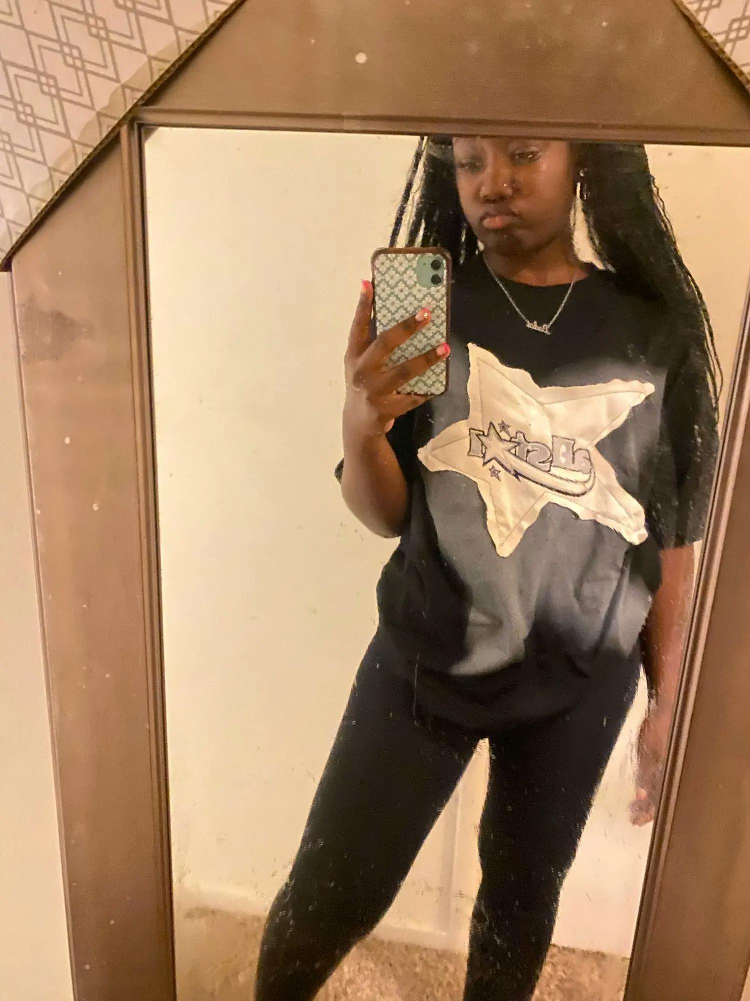- Y2K star patchwork on chest